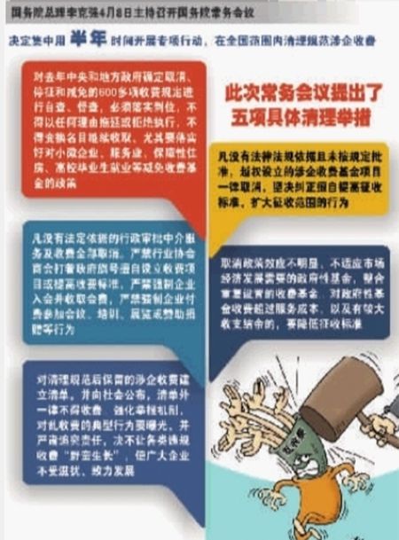 會(huì)議確定,集中用半年時(shí)間開展專項(xiàng)行動(dòng),在全國全面清理涉企行政事業(yè)性收費(fèi)和政府性基金,涉及行政審批前置、市場(chǎng)監(jiān)管和準(zhǔn)入等具有強(qiáng)制壟斷性的經(jīng)營服務(wù)性收費(fèi),行業(yè)協(xié)會(huì)商會(huì)涉企收費(fèi)等。