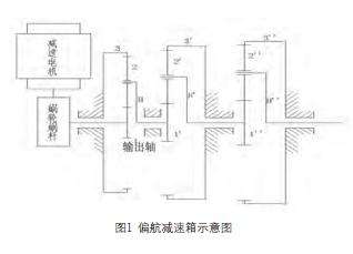 偏航減速箱的主要作用是增大減速箱輸出端轉(zhuǎn)矩,驅(qū)動(dòng)機(jī)艙緩慢平穩(wěn)的偏航。該減速箱采用一級(jí)渦輪蝸桿機(jī)構(gòu)和三個(gè) NGW 式行星輪系串聯(lián)的減速機(jī)構(gòu)。圖 1 是偏航減速箱的示意圖。