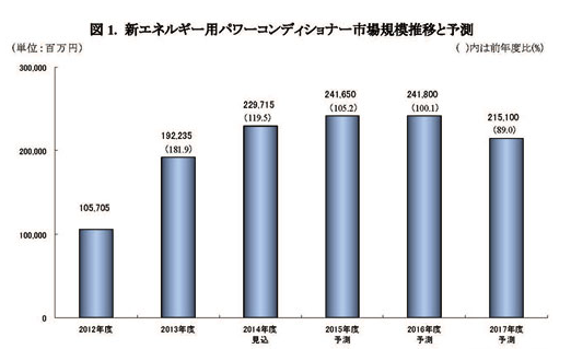 日本新能源用逆變器市場2014財年增長19.5% 2017財年起將開始減少