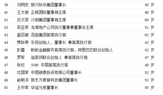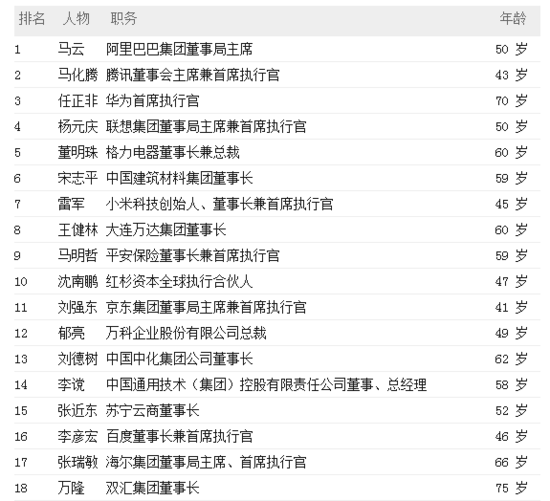 2015年中國(guó)最具影響力的50位商界領(lǐng)袖排行榜