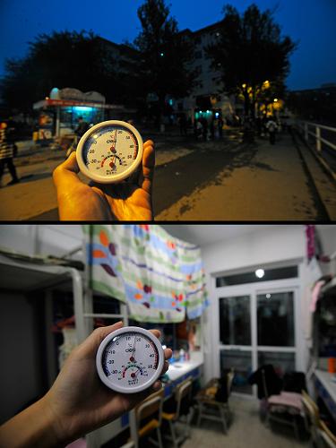11月1日,太原市山西財經(jīng)大學(xué)室外測得溫度為15攝氏度(上圖),學(xué)生宿舍里測得溫度為16攝氏度(下圖)。 新華社記者 范敏達 攝