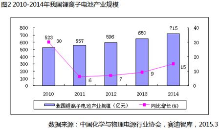 2014年我國鋰離子電池產(chǎn)業(yè)規(guī)模達到715億元,同比增長15%,增幅比2013年提高6個百分點,增速進一步回暖。受消費電子產(chǎn)品增速趨緩以及電動汽車迅猛發(fā)展影響,我國鋰離子電池產(chǎn)業(yè)發(fā)展呈現(xiàn)出“一快一慢”新常態(tài),即動力型鋰離子電池需求快速增長,消費型鋰離子電池市場增速明顯放緩。2014年我國鋰離子電池產(chǎn)業(yè)發(fā)展呈現(xiàn)以下特征:一是國家高度關(guān)注,電動汽車迎來春天;二是政府職能轉(zhuǎn)變,發(fā)展環(huán)境不斷優(yōu)化;三是布局速度加快,鋰離子電池企業(yè)忙轉(zhuǎn)型;四是資本市場活躍,產(chǎn)業(yè)整合勢頭凸顯。