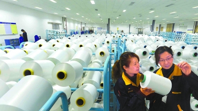 目前,總投資45億元的德為聚纖公司將和4家本地紡織企業(yè)對接,實現(xiàn)“就地取材”、抱團(tuán)發(fā)展。一季度,尤溪縣規(guī)模以上紡織企業(yè)實現(xiàn)產(chǎn)值38.6億元,同比增長7.1%。圖為近日德為公司工人在察看產(chǎn)品質(zhì)量。