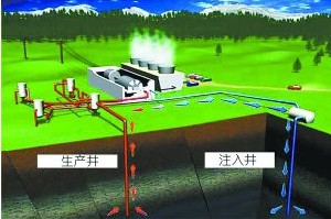核心提示:干熱巖發(fā)電示意圖 據(jù)消息,經(jīng)過(guò)兩年鉆探驗(yàn)證,青海省共和盆地中北部地下2230米處,勘查到埋藏淺、溫度高的干熱巖,這是中國(guó)首次發(fā)現(xiàn)的可大規(guī)