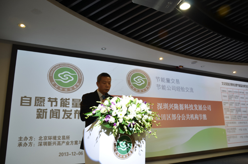 深圳市興隆源節(jié)能服務(wù)公司董事長周澤學(xué)在發(fā)布會上表示有幸參與到政府公共機構(gòu)節(jié)能項目的節(jié)能量指標交易,并詳細介紹了此次交易的經(jīng)過。指出公司自成立之初已將節(jié)能量交易標準植入到節(jié)能項目的全過程,實現(xiàn)了交易的標準在項目上的落實,充分地將這項增值的價值輸入給用能單位。在國家控制能源消費總量“倒逼機制“的背景下,節(jié)能量交易模式為節(jié)能服務(wù)公司帶來了核心競爭力,也為用能方創(chuàng)造了核心價值。