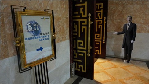 本次會議承辦方喜德瑞中國喀什代理商高總,將會場布置的儼然像一個大型的高峰論壇,無論是懸掛在高樓上的宣傳橫幅,還是會場里BAXI(八喜)英倫管家指示牌,都讓來賓不由自主的開始期待這場隆重的會議。