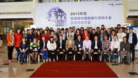 2013年 9月25日,喜德瑞新疆代理商會議及供熱技術(shù)研討會在喀什隆重舉行。本次會議,吸引了80余人的優(yōu)秀供暖行業(yè)同仁參與,輻射整個南疆地區(qū)。喜德瑞集團(tuán)中國區(qū)總裁謝新天率市場部、售后服務(wù)部及銷售團(tuán)隊為來賓分享了喜德瑞中國的發(fā)展戰(zhàn)略規(guī)劃、銷售經(jīng)驗,并對壁掛爐安裝技術(shù)、售后維護(hù)作了詳盡的指導(dǎo)。