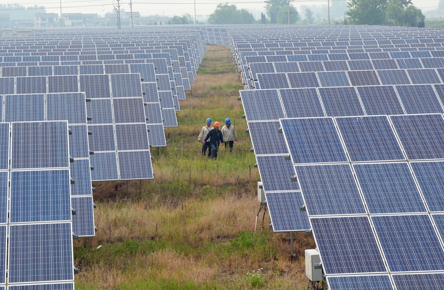 5月6日,江蘇高郵市供電公司員工在高郵市三垛鎮(zhèn)農(nóng)業(yè)大棚光伏發(fā)電企業(yè)進行用電檢查。借助國家對清潔能源政策扶持優(yōu)勢,高郵市有序推進太陽能光伏發(fā)電項目建設,已建起4座集中式光伏發(fā)電站和3家分布式發(fā)電站,預計年累計發(fā)電約2億千瓦時,與相同發(fā)電量的火電廠相比,每年可節(jié)約標煤5.5萬噸、減少二氧化碳排放18萬噸。