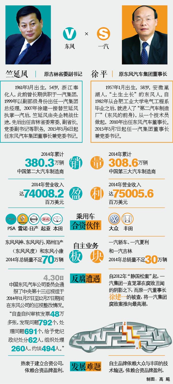 實(shí)際上,這樣的主帥換位情況在中國(guó)汽車工業(yè)逾30年的發(fā)展史上尚屬首次。在一汽集團(tuán)和東風(fēng)汽車接連遭遇“反腐沖擊波”之后,如何在體制上高效斬?cái)嗉扔欣骀湕l,自上而下重構(gòu)內(nèi)部新秩序,使這兩大企業(yè)重回正軌,進(jìn)而推進(jìn)自主品牌的建設(shè),是橫亙?cè)谛炱胶腕醚语L(fēng)這兩名汽車?yán)媳媲暗墓餐}。