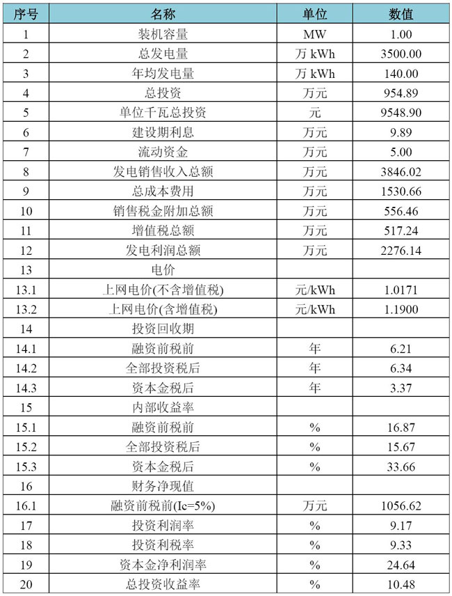 表1:Ⅲ類資源區(qū)地面光伏電站財(cái)務(wù)指標(biāo)表