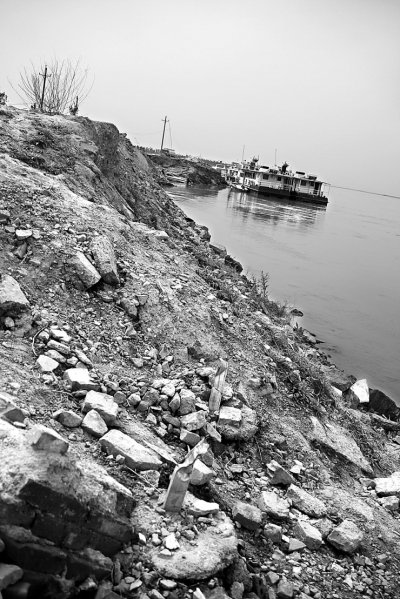 記者在現(xiàn)場(chǎng)發(fā)現(xiàn),這塊“新土地”表層看起來是正常的黃土,而下層全是磚頭瓦礫、水泥柱等建筑垃圾堆積而成,這些建筑垃圾都裸露在外,斷壁殘磚浸泡在黃河水中。