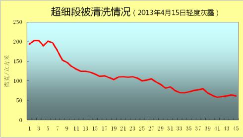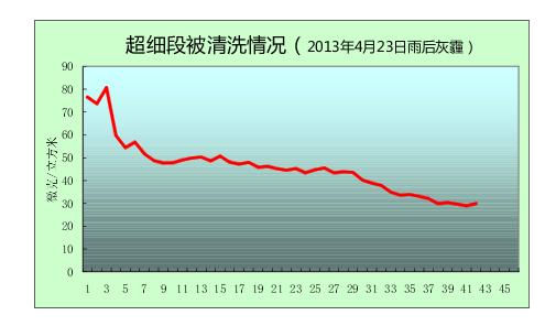 2013年4月23日,廣州雨后輕度灰霾,我們進行更為苛刻的灰霾清洗試驗,結(jié)果如下: