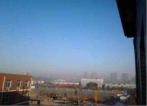 下圖是2014年12月23日邯鄲市上空的灰霾情況,大氣上部是APEC藍,下部有一層淡棕色的霾。這顯然是粉煤塵微粒、鐵礦石微粒、二氧化氮氣體、二氧化硫氣體或它們的混合物。