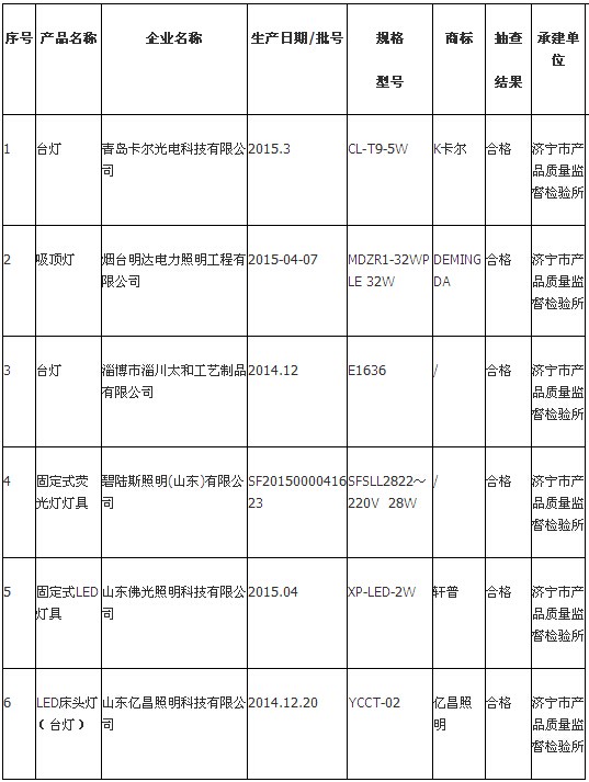 2015第2批室內(nèi)照明燈具產(chǎn)品質(zhì)量省監(jiān)督抽查結(jié)果