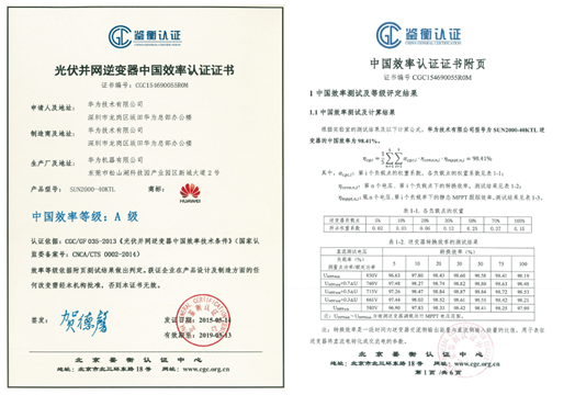 華為SUN2000全系列通過中國效率認(rèn)證測試