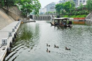圖為使用再生水的護(hù)城河南門段,碧水輕舟環(huán)境宜人 (王旭東 攝)