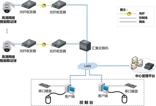 現(xiàn)階段,傳統(tǒng)手動(dòng)抓拍系統(tǒng)需要在違法行為頻發(fā)區(qū)域布設(shè)模擬球機(jī)或數(shù)字球進(jìn)行圖像采集,視頻圖像通過同軸電纜傳到監(jiān)控中心,監(jiān)控中心的業(yè)務(wù)專員通過鍵盤控制球機(jī)云臺(tái),實(shí)時(shí)觀察道路車輛通行情況,一旦發(fā)生違法行為,手動(dòng)控制球機(jī)跟蹤車輛違法過程,并通過變倍放大聚焦等手段獲取違法車輛號(hào)牌、車內(nèi)駕駛?cè)饲闆r等細(xì)節(jié)信息,最終實(shí)現(xiàn)違法行為取證,整個(gè)過程需要人工全程干預(yù)。