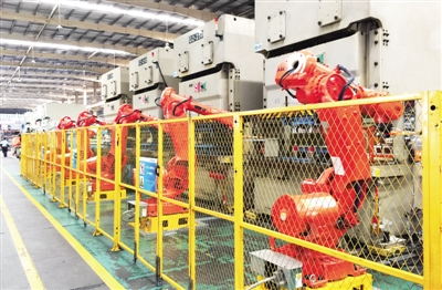 格力原創(chuàng)智能制造水平不斷提升,圖為格力自主研發(fā)的工業(yè)機(jī)器人在車間里忙碌作業(yè)。