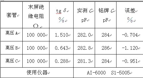 c) 介損異常的套管應注意其電容量的變化,若其電容量與出廠值相比有一定的增加,應引起重視,加強在線監(jiān)測,防止可能出現(xiàn)的由于套管電容層絕緣擊穿而引發(fā)的事故;