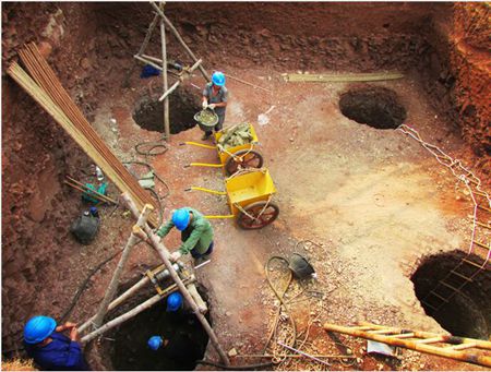 6月18日,在榆橫-濰坊1000千伏交流輸變電工程線路工程臨朐28標段31#塔基施工現(xiàn)場,吉林送變電公司施工人員正在緊張有序的按計劃進行施工。連日來,該公司在屬地公司臨朐公司的配合下,冒高溫全力推進塔位基礎施工工作,確保特高壓工程順利推進。
