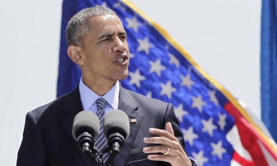 2015年5月20日,美國總統(tǒng)奧巴馬在康涅狄格州新倫敦的美國海岸警衛(wèi)隊(duì)學(xué)院發(fā)表演講,闡述氣候變化的危險(xiǎn)性。