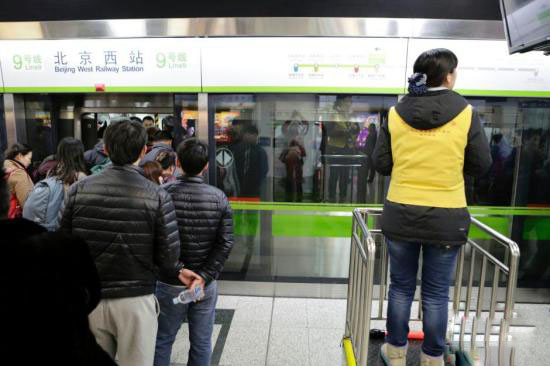 1月10日,北京地鐵9號線北京西站的工作人員站資料圖