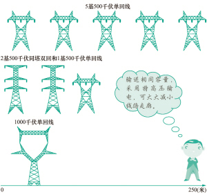 1000千伏交流特高壓線路的送電容量,是交流500千伏線路的5倍。在輸送相同功率的情況下,特高壓交流1000千伏經(jīng)濟輸電距離是500千伏線路的2~3倍。