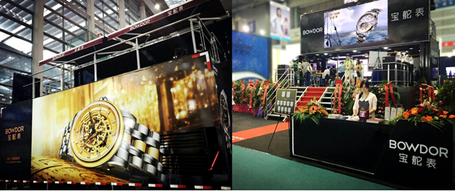 2015年6月25日—28日,第26屆中國(深圳)國際鐘表展在深圳國際會展中心盛大舉行。此次鐘表展上最大的亮點(diǎn)便是寶舵表(BOWDOR)打造的全自動變形式雙層展館,鐘表展上首次出現(xiàn)可移動展館,酷炫造型震撼全場!