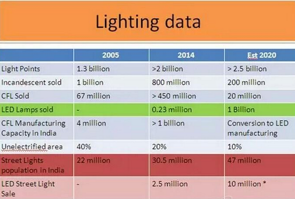 為大力推進LED發(fā)展,印度規(guī)劃了5年計劃,到2020年期望達到以下目標: