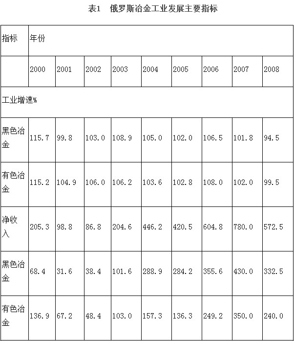普京時(shí)期俄羅斯冶金工業(yè)發(fā)展?fàn)顩r及產(chǎn)業(yè)政策(上)