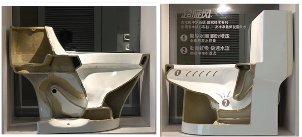 3.大管道設(shè)計(jì):超旋風(fēng)馬桶的大管道設(shè)計(jì),可迅速匯流,將污物順暢排出,沖水更快更順暢。