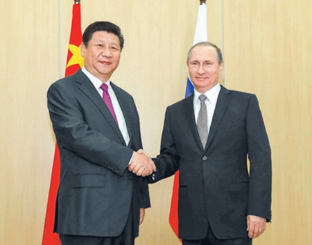 習(xí)近平指出,今年5月我們?cè)谀箍瞥晒?huì)晤,共同出席衛(wèi)國戰(zhàn)爭(zhēng)勝利70周年慶典,向世界發(fā)出維護(hù)第二次世界大戰(zhàn)勝利成果和國際正義的呼聲。我們商定將絲綢之路經(jīng)濟(jì)帶建設(shè)同歐亞經(jīng)濟(jì)聯(lián)盟建設(shè)對(duì)接,重點(diǎn)開展投資、金融、能源、高鐵等基礎(chǔ)設(shè)施建設(shè)、航空航天、遠(yuǎn)東開發(fā)等領(lǐng)域合作。兩國政府有關(guān)部門正落實(shí)我們達(dá)成的一系列重要合作共識(shí),一些新領(lǐng)域合作已經(jīng)取得實(shí)實(shí)在在的成果。