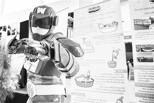 7月8日,在泰國曼谷都市水務(wù)局,一名工作人員在活動(dòng)上扮成卡通形象“節(jié)水衛(wèi)士”。當(dāng)日,泰國曼谷都市水務(wù)局舉行“共同節(jié)約水資源”節(jié)水宣傳活動(dòng),倡導(dǎo)市民節(jié)約用水。泰國正遭遇嚴(yán)重旱災(zāi),泰國北部、東北部和包括首都曼谷在內(nèi)的中部地區(qū)均受到影響。