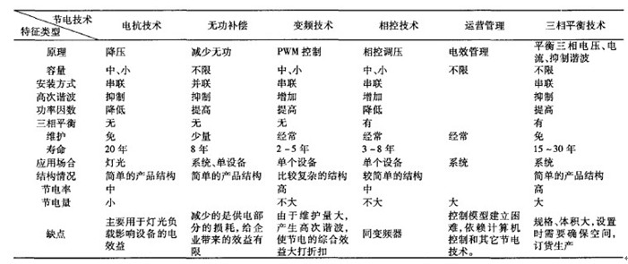 表1 節(jié)電技術(shù)特征對(duì)比表
