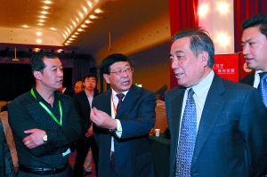 在四月十一至十二日于北京召開(kāi)的二○一四石化產(chǎn)業(yè)發(fā)展大會(huì)上,中國(guó)石油和化學(xué)工業(yè)聯(lián)合會(huì)會(huì)長(zhǎng)李勇武與會(huì)議代表進(jìn)行交流。 (圖片均由本報(bào)記者張育攝)