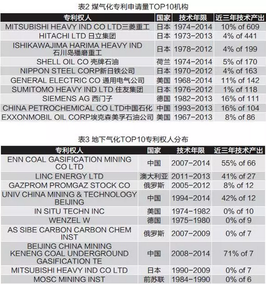 地下煤氣化領(lǐng)域的主要專利權(quán)人集中在表3列出的10位,可以看到我國新奧集團的表現(xiàn)最為突出,另外礦業(yè)大學(xué)和北京中礦科能煤炭地下氣化技術(shù)中心也有不錯表現(xiàn),而國外的專利權(quán)人分布較為分散,除中國機構(gòu)以及澳大利亞的林茨能源,其他機構(gòu)多活躍在上世紀(jì)七八十年代。