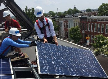 2015年7月7日,巴爾地摩市東部的聯(lián)排住宅正在安裝太陽能光伏板。(圖片來源:白宮)