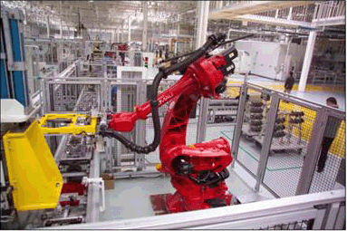 在另一項汽車智能化制造的實例中,一條基于機器人的汽車焊接自動化生產(chǎn)線,其研制的智能高速柔性自動化焊裝線,用來滿足白車身生產(chǎn)對高綱領、高節(jié)拍、高柔性、自動化、智能化焊裝線的生產(chǎn)需求,并實現(xiàn)了以下五項基本功能:一是智能切換,實現(xiàn)了關鍵焊接工位白車身總成車型切換及定位焊接;二是高速輸送設備,實現(xiàn)了工位間精確高速傳輸;三是質(zhì)量控制,可在線檢測白車身焊接后的幾何精度;四是機器人焊接,實現(xiàn)了白車身總成的焊接及搬運;五是生產(chǎn)控制系統(tǒng),采用了基于工業(yè)總線技術的智能控制系統(tǒng)。