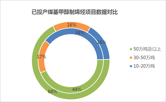 比如說煤制烯烴,傳統(tǒng)的催化裂化或者蒸汽裂解裝置,很多都是在20-30噸/年的規(guī)模,而新投放市場的裝置在規(guī)模方面則有較大的變化,根據(jù)卓創(chuàng)資訊的統(tǒng)計,已投產(chǎn)的煤基甲醇制烯烴有8個項目年產(chǎn)能在50萬噸以上,其產(chǎn)能達468萬噸,占總產(chǎn)能的68%。煤制油方面,前期神華集團和陜西未能的間接液化項目,都是百萬噸級別,已經(jīng)符合國家的準(zhǔn)入門檻,而后續(xù)在建的如新疆廣匯、潞安合成油等項目,都是300萬噸、500萬噸的規(guī)模也可以看出企業(yè)對規(guī)?;l(fā)展的認可。