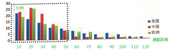 這種情況,是將上班需求作為主要考慮內(nèi)容。很有趣的是,在通用汽車做沃藍(lán)達(dá)提出EREV增程式這個區(qū)別于PHEV插電式混合動力的概念,主要的理由就是美國的日常上班通勤距離,本質(zhì)上這兩類車差異并不是那么大。如圖3所示,這個距離由于統(tǒng)計上的意義。實際的消費者調(diào)研中,普遍具有分布性有地域性和時間性,只能作為設(shè)計的參考。這是由于上班通勤有一定的不確定性,比如緊急事件、臨時使用等。