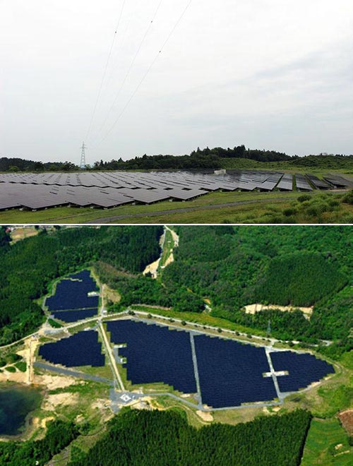 圖1:輸出功率為8.786MW的“入釜光伏電站”(上圖由日經(jīng)BP社拍攝,下圖由LM SunPower拍攝)