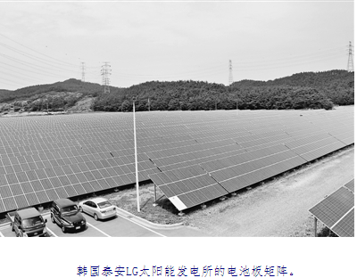 盛夏時(shí)節(jié),黃海之濱的韓國忠清南道泰安郡陽光熾烈,泰安LG太陽光發(fā)電所坐落于海邊,一排排深藍(lán)色的太陽能電池板沿東西方向整齊排列,正在將陽光轉(zhuǎn)化為電能。