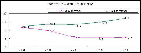 上半年,軟件業(yè)實現(xiàn)出口251億美元,同比增長5.7%,增速比一季度下降4個百分點,低于去年同期11.4個百分點,低于全行業(yè)增速11.4個百分點。其中外包服務(wù)出口和嵌入式系統(tǒng)軟件出口分別增長4.8%和4.1%,增速低于一季度7.7和3個百分點,低于去年同期17.1和8.8個百分點。