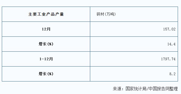 2013年內蒙古自治區(qū)鋼材生產總量統(tǒng)計