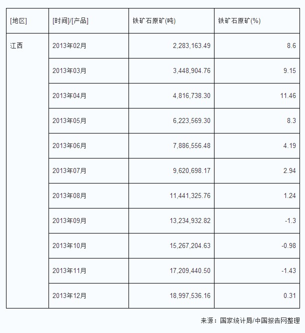 2013年江西鐵礦石原礦生產(chǎn)量及增速情況