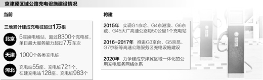 按照計(jì)劃,2015年將率先完成京津冀區(qū)域內(nèi)G1京哈、G4京港澳、G6京藏、G45大廣高速公路服務(wù)區(qū)充電設(shè)施建設(shè),初步形成聯(lián)通北京、天津及河北主要城市、平均服務(wù)間距不超過50公里的充電設(shè)施服務(wù)走廊。2016—2017年,全面推進(jìn)京津冀區(qū)域內(nèi)G3京臺(tái)、G5京昆、G7京新等高速公路服務(wù)區(qū)充電設(shè)施建設(shè),并在高速公路充電設(shè)施主干網(wǎng)絡(luò)的輻射帶動(dòng)下,加快社會(huì)公共停車區(qū)域充電設(shè)施建設(shè)。力爭(zhēng)到2020年,建設(shè)形成京津冀區(qū)域一體化的公用充電服務(wù)網(wǎng)絡(luò)體系,為創(chuàng)建京津冀綠色交通服務(wù)體系提供有力支撐。
