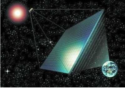 據(jù)測(cè)算,按照目前人類(lèi)所生產(chǎn)的太陽(yáng)能電池板的能量轉(zhuǎn)換效率,如果能夠在距地球赤道約36000公里上空的靜止軌道上,發(fā)射一顆配有邊長(zhǎng)為2.5千米的正方形太陽(yáng)能電池板的發(fā)電衛(wèi)星,其發(fā)電量可達(dá)到100萬(wàn)千瓦級(jí),足以和一座核能發(fā)電機(jī)組相媲美。