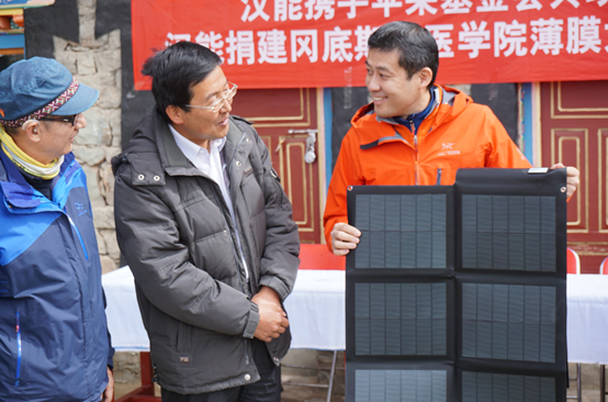 漢能捐贈(zèng)北京蘋果慈善基金會(huì)的薄膜太陽能充電包,部分將用于西藏生態(tài)保護(hù)