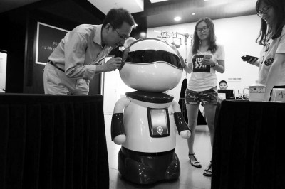 小度長(zhǎng)著一個(gè)白色的大腦袋,戴著一副黑色的大墨鏡,有多半個(gè)人高,身材也十分“健碩”。進(jìn)入會(huì)場(chǎng)的建言人和工作人員,都忍不住過去“圍觀”。小度的拿手絕活兒是能和大家進(jìn)行智能語(yǔ)音對(duì)話。一位建言人對(duì)小度說(shuō):“你給我們講個(gè)笑話吧”。小度說(shuō):“一個(gè)同學(xué)在參加四級(jí)考試前一個(gè)月,社交軟件簽名寫的是‘事在人為’,兩個(gè)星期后卻改成了‘事在隨緣’,考完試又改成了‘重在參與’。”聽完這個(gè)笑話,大家相視一笑,并沒出聲,小度趕忙說(shuō):“不好笑嗎?”這次,圍著小度的人全都笑出了聲。