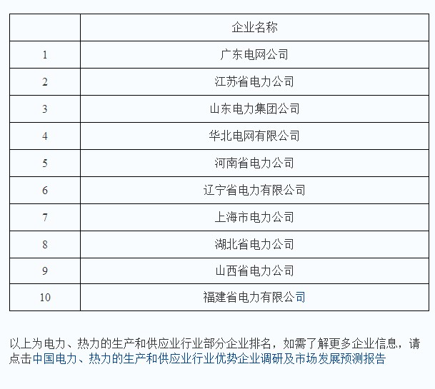 2010年電力、熱力的生產(chǎn)和供應(yīng)業(yè)行業(yè)企業(yè)排名